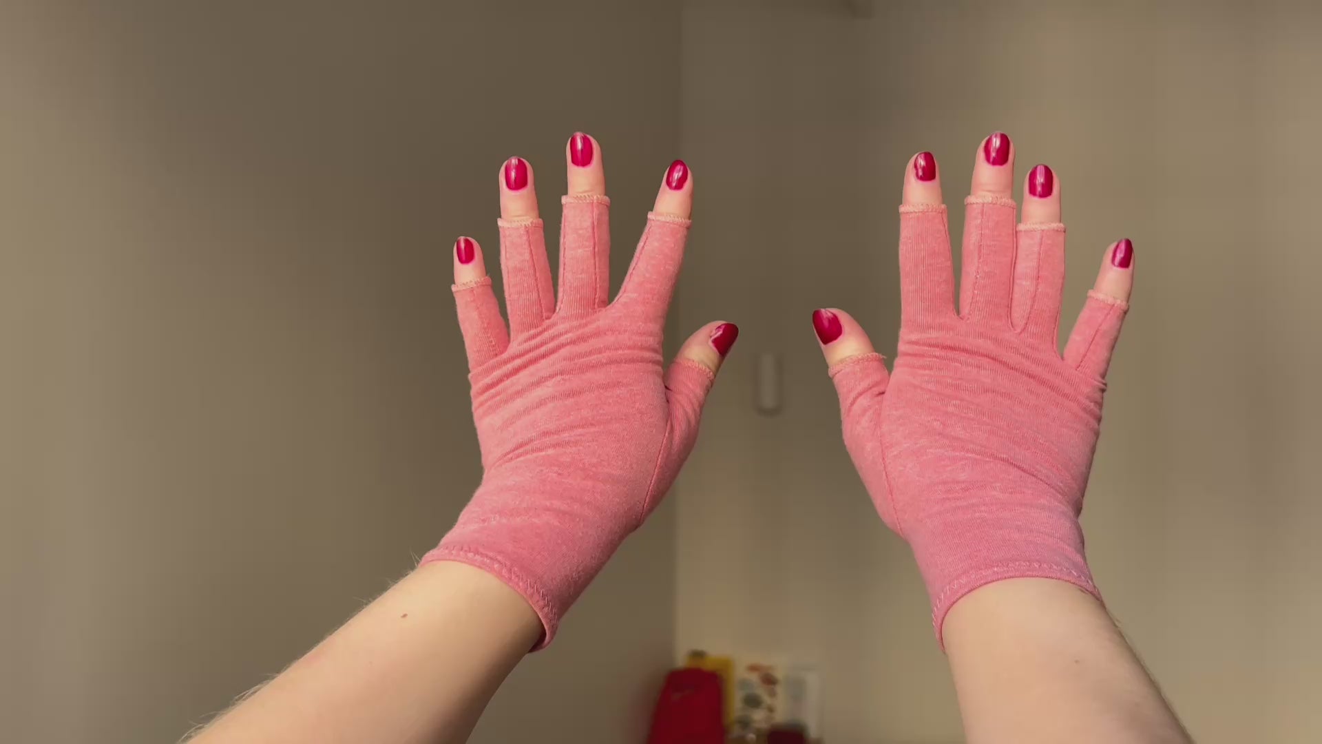 Tvätta handskarna för hand i kallt vatten med mild tvål. Låt dem lufttorka – undvik tvättmaskin, torktumlare och starka rengöringsmedel för att bevara elasticiteten.